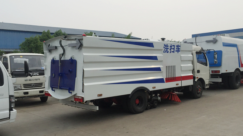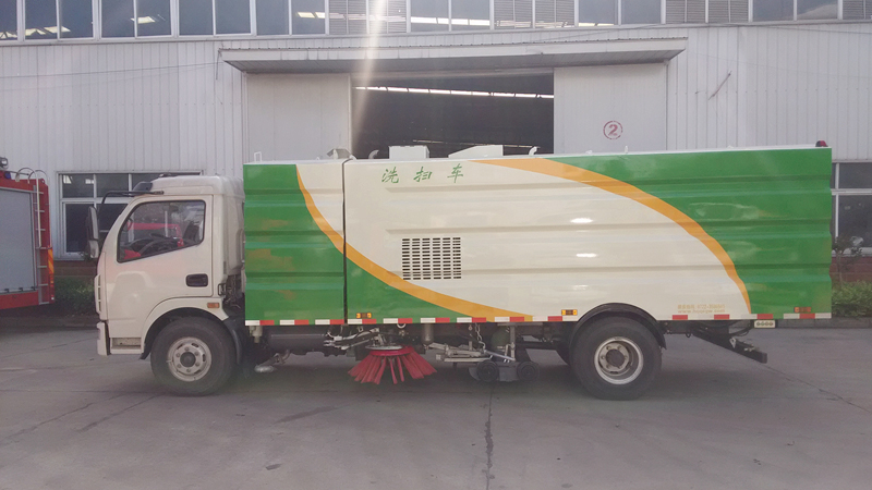 6)具備倒車保護(hù)裝置,在作業(yè)過(guò)程中如遇緊急倒車,智能化的控制系統(tǒng)會(huì)自動(dòng)停止作業(yè)并收回掃盤、吸盤和側(cè)噴桿;具有防止舉升垃圾箱翻車保護(hù);具有檢修安全保護(hù)。